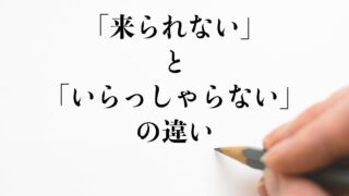 違い「来られない」と「いらっしゃらない」の違いとは?意味や違いを分かりやすく解釈 この記事では、「来られない」と「いらっしゃらない」の違いを分かりやすく説明していきます。「来られない」とは?「来られない」の意味は以下の通りです。1つ目は、「相手が、ある場所に来ることができないこと」という意味です。2つ目は「相手がある場所...2023.08.25違い