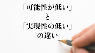 違い「可能性が低い」と「実現性の低い」の違いとは?意味や違いを分かりやすく解釈 この記事では、「可能性が低い」と「実現性の低い」の違いを分かりやすく説明していきます。「可能性が低い」とは?「可能性が低い」とは実現できる見込みや事実がそうである見込みが小さく、実現できなかったり間違っている確率が高いことです。なにかの実現...2023.08.25違い